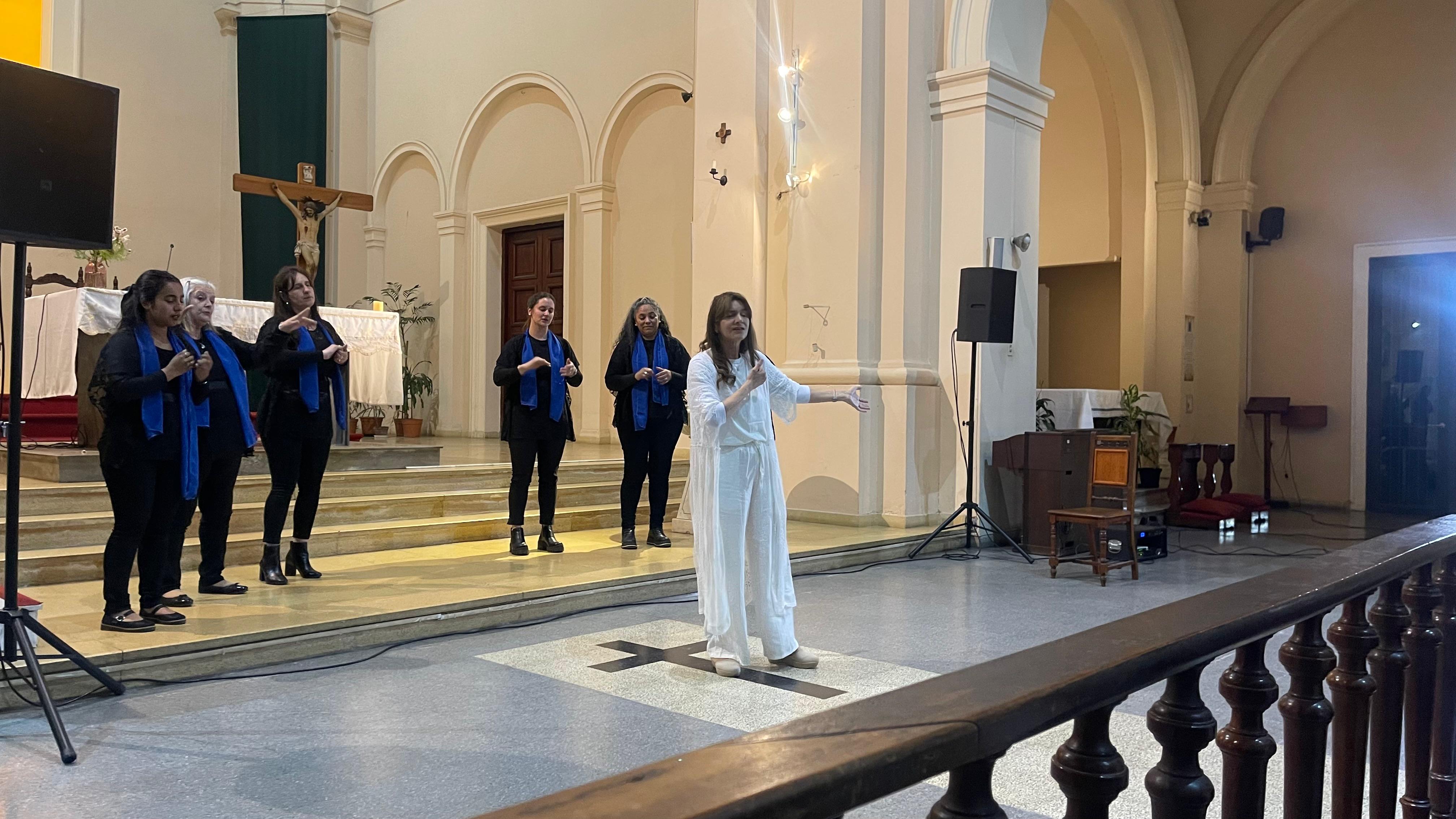 En total fueron tres presentaciones: una en la Parroquia Santa Cruz, otra en la Escalera Anda y, finalmente, el cierre tuvo lugar sábado a las 20 en la Parroquia Nuestra Señora del Carmen, oportunidad en la que los integrantes del coro Armonía de Salto, conjuntamente con "Sueños en señas", interpretaron de manera conjunta "Yo vengo a ofrecer a mi corazón", de Fito Paez.