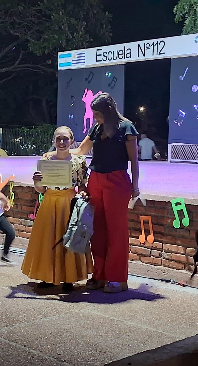 Día de ayer tuvo lugar el acto de cierre del año lectivo de la Escuela N° 112 "República Argentina" de esta ciudad de Salto, oportunidad en la que el Consulado entregó cinco reconocimientos a alumnos que se destacaron por su desempeño y compromiso a lo largo de todo el período escolar. Los diplomas otorgados correspondieron a cuatro menciones por mejor asistencia en los turnos matutino y vespertino y una mención especial por la destacada participación en las Olimpiadas de Matemática. Los alumnos distinguidos fueron Paulina Cardoso, Julia Cardoso, Isabella Sarli, Delfina Cardoso y Anahí Beasley.